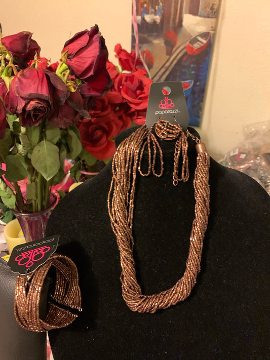 3pc set color copperr; includes: necklace(comes with complimentary earrings), bracelet and ring